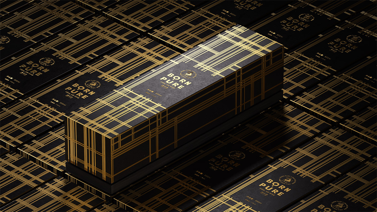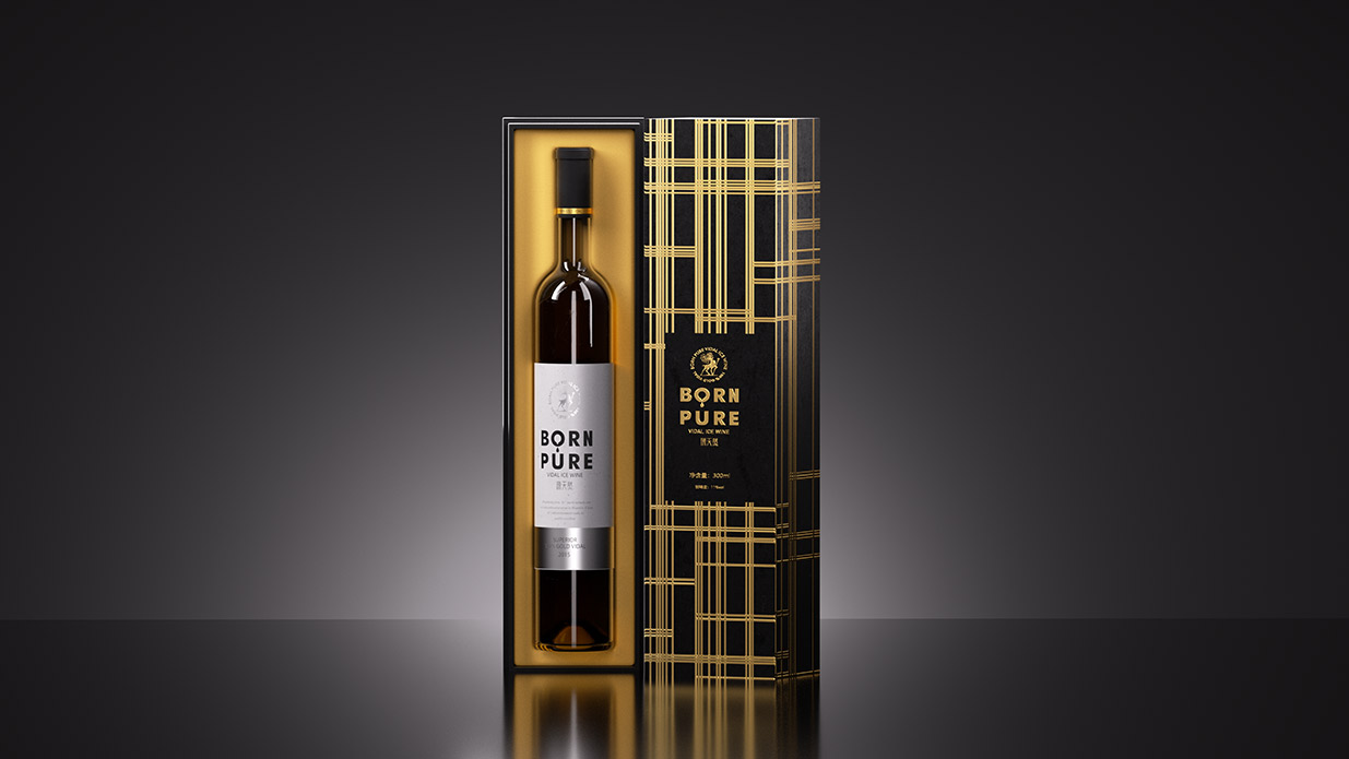 Item BORN PURE 冰酒设计 BORN PURE 冰酒源自北纬41°桓龙湖畔,世界冰葡萄酒产区的源天然冰酒,选用优质威代尔冰葡萄,经过传统的工艺发酵,酿出的冰酒酒体金黄,醇透晶亮,香气馥郁。包装形象设计取材辽宁特色动物鹿为原型,通过设计提炼,赋予其神秘的故事感,源天然英文寓意“”天生冰纯“,很精准的体现了冰酒的质感。