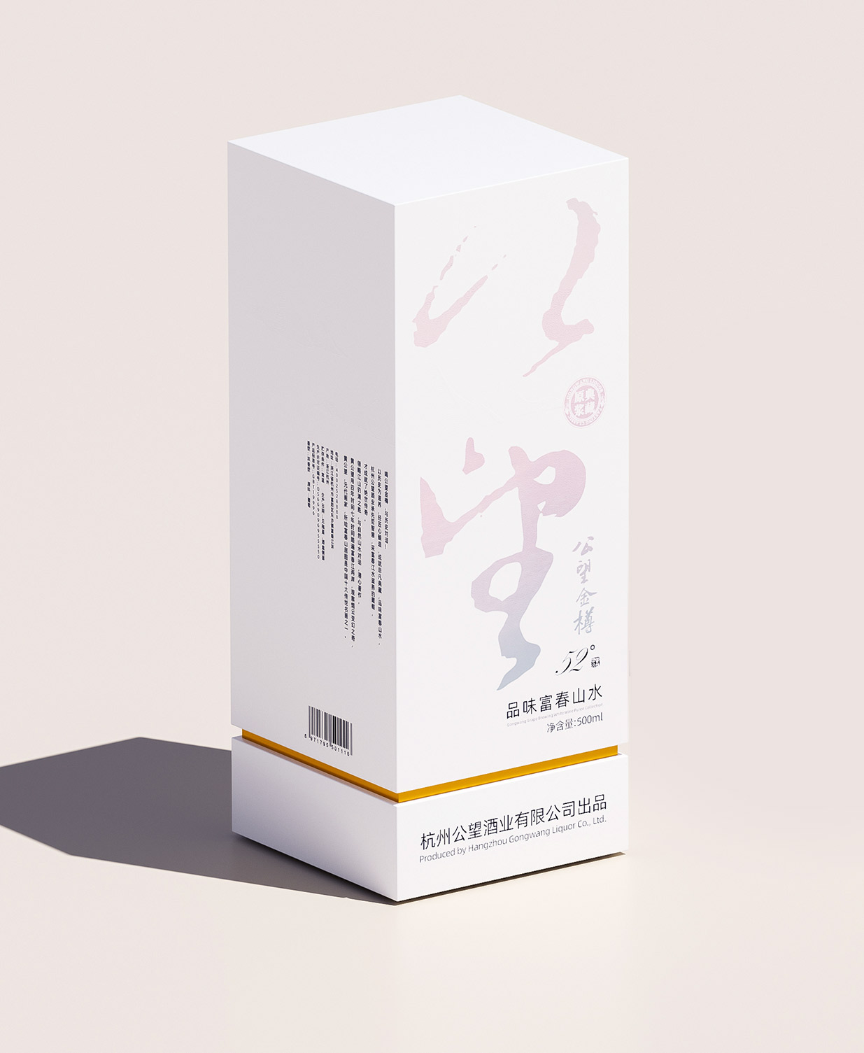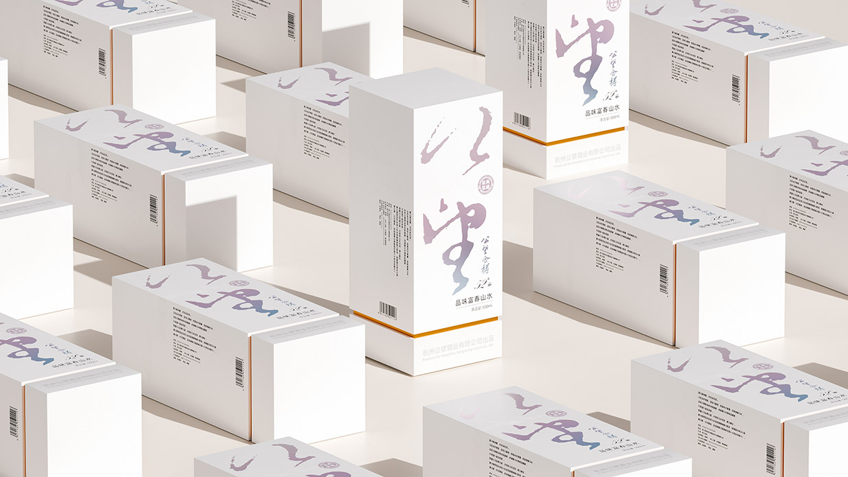 Introduction:公望白酒以其独特的葡萄酿造工艺脱颖而出,其口感醇正且带有葡萄特有的果香,这种与众不同的特质为包装设计提供了丰富的灵感来源。公望白酒的酿造基地位于风景秀丽的富春江畔,这里是元代著名画家黄公望的故里,深厚的文化底蕴为产品注入了独特的灵魂。因此,包装设计的核心理念是借势地域文化,将传统文化与现代审美相结合,打造出具有独特人文气质的产品形象。