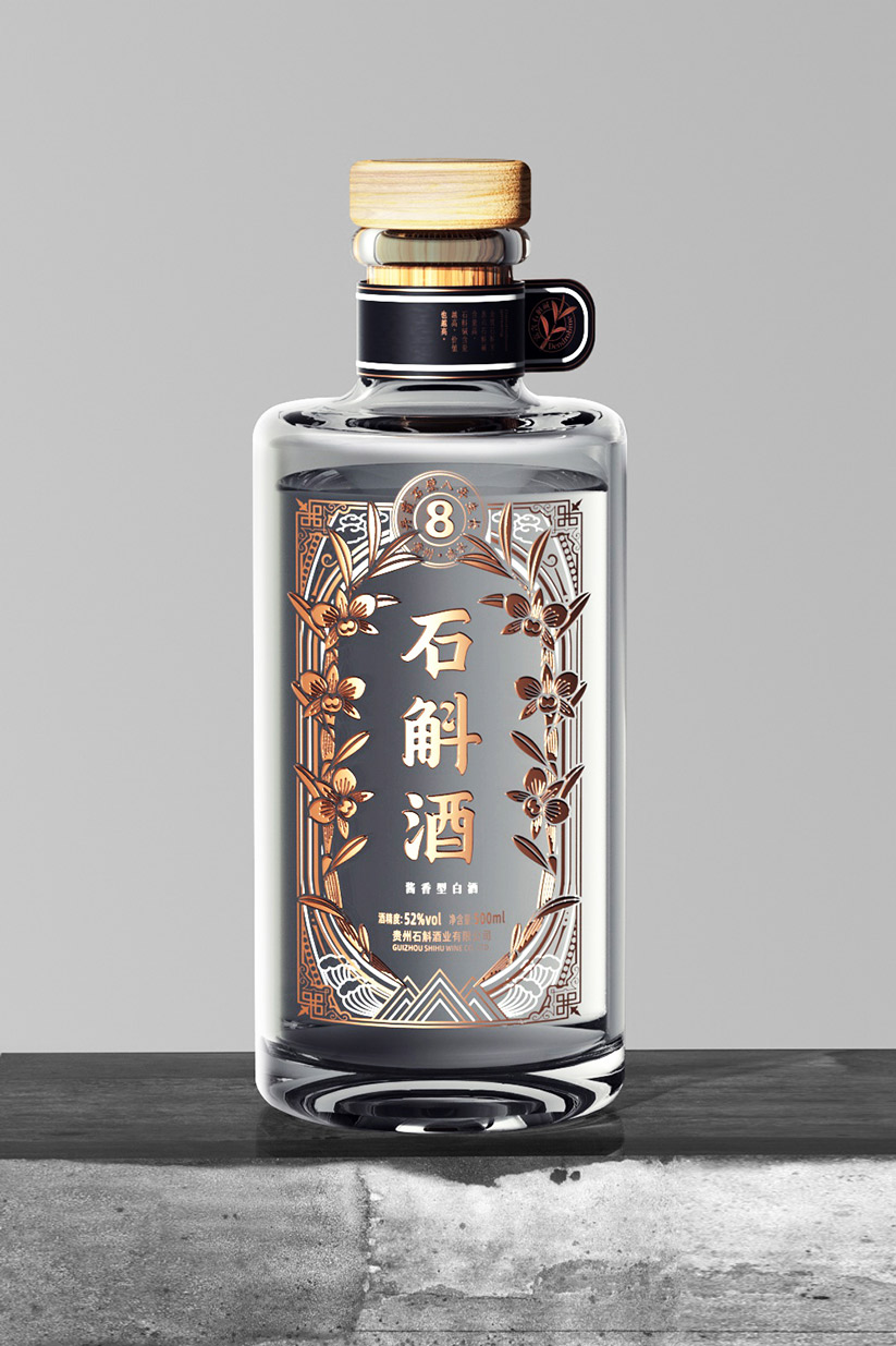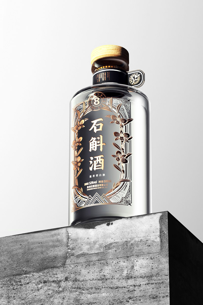 精选8年生金钗石斛作为主要原料,采用贵州传统的酱香白酒酿造工艺,经过精心制作,使金钗石斛的清香与酱香白酒的醇厚完美融合。瓶身选用高级金色作为主色调,象征金钗石斛的稀有。以白色线条描绘出山水自然图案,寓意金钗石斛源自自然,品质卓越。