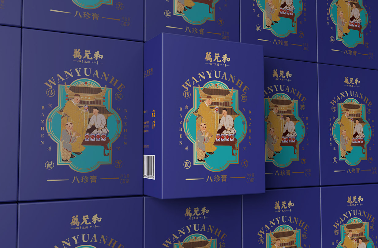 Introduction:万元和八珍膏,百年传承,历史悠久。自清光绪年间创立以来,一直致力于传承和发扬中华传统食养文化。通过包装设计展现了品牌的历史底蕴和文化内涵。