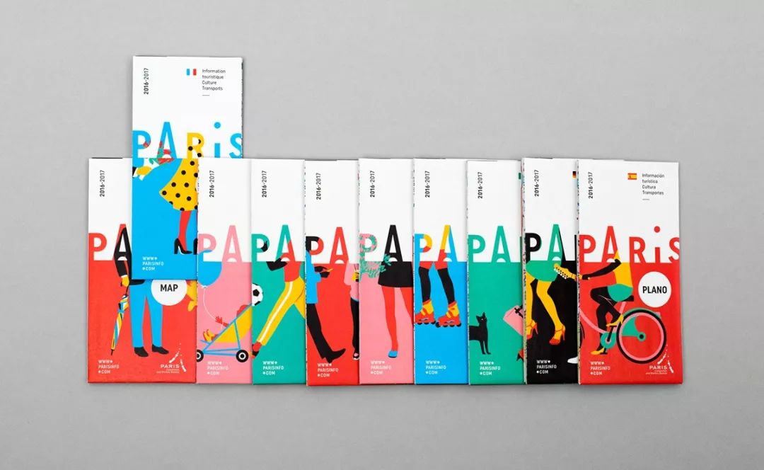 巴黎旅游局免费提供给游客的地图画册设计。 提供10种语言的版本。 塞弗林·米勒(SéverinMillet)创造了一个个生动活泼的人物插图,并且只有腿可见:很好地表达了漫步巴黎的主题!