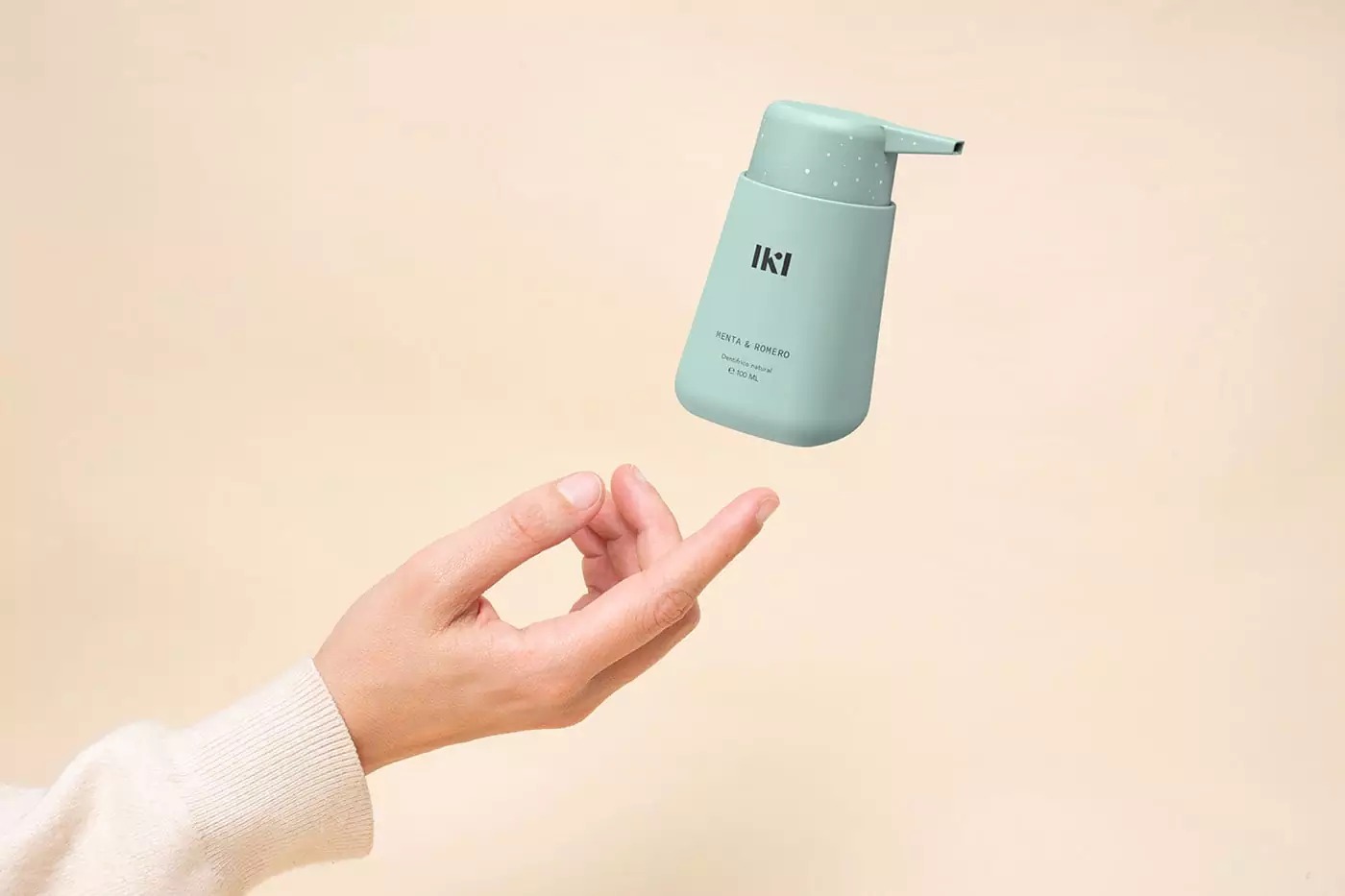 IKI产品的背后是轻松,清新和优雅的概念。想象Menorca海滩的日落 。阳光轻柔地照在沙滩上,海浪拍打在岩石上。为了能够这些想法在产品中充分体现,设计师使用具有烘烤粘土质地的再生塑料容器 。颜色代表大海,容器的形状受到了海鸥的启发 。