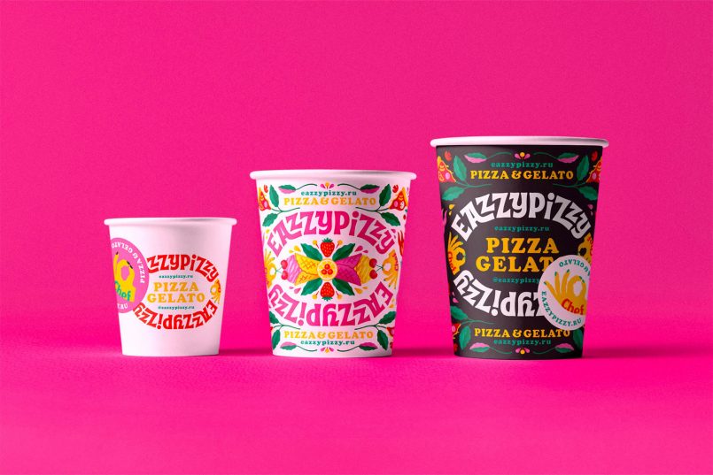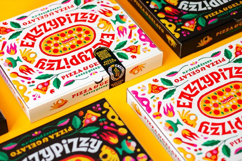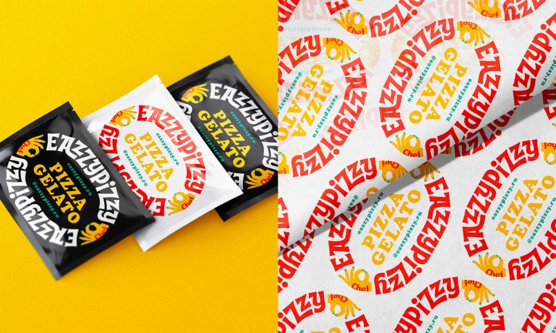 Istanbul-based studio W Design Bureau worked in collaboration with illustrator Lesha Limonov to produce this bold and fun brand identity and packaging design system for EazzyPizzy, a pizza and gelatto restaurant.
