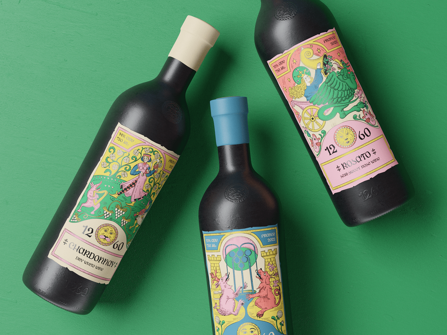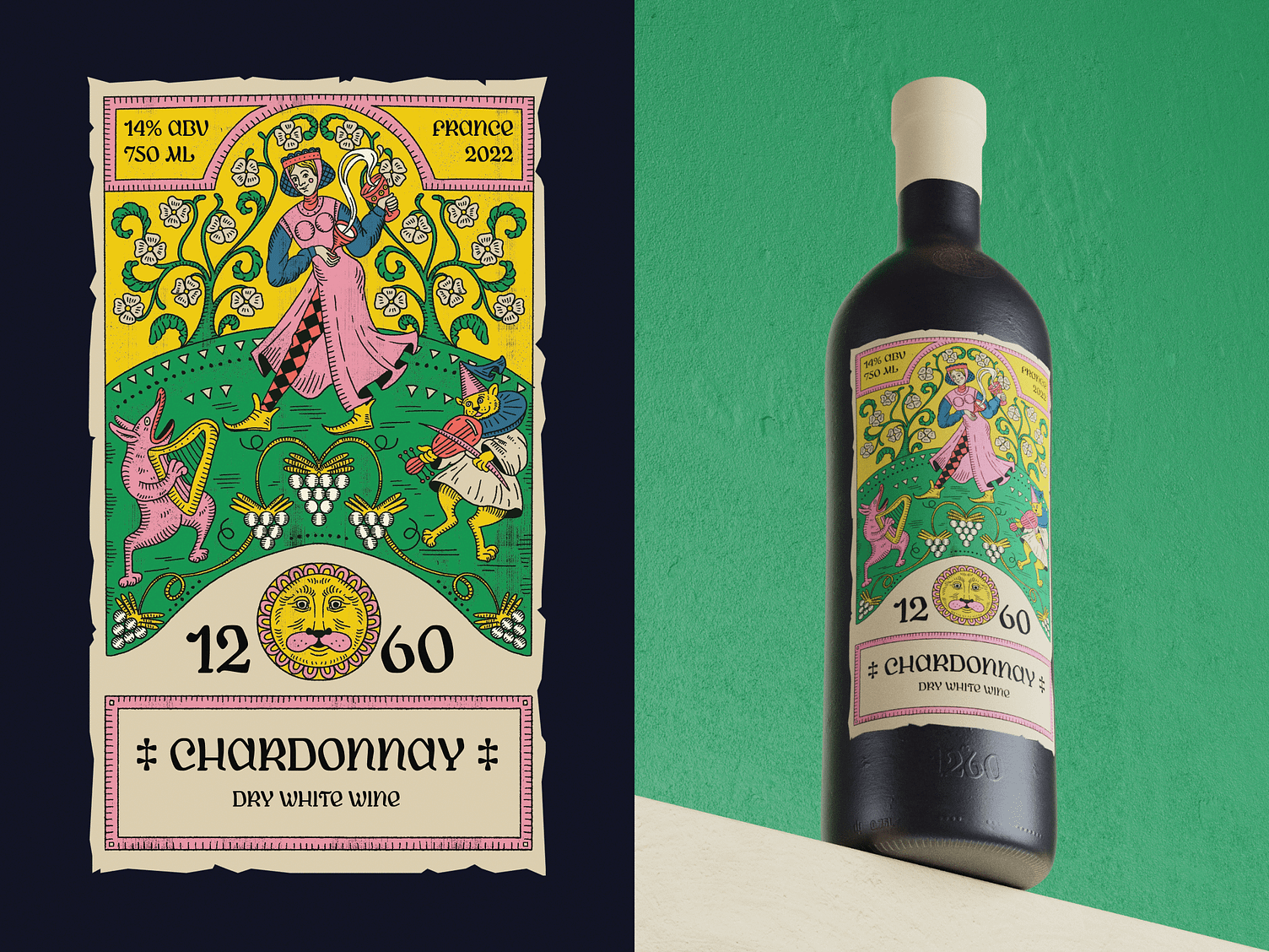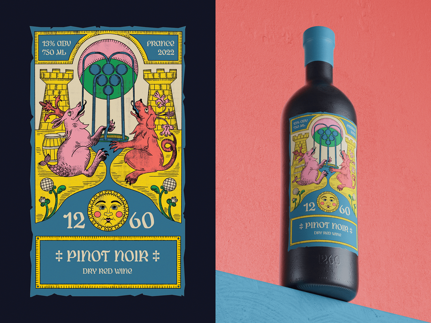 这组葡萄酒包装设计,采用中世纪复古设计风格,精美的插画极大地提升产品的吸引力和艺术感。