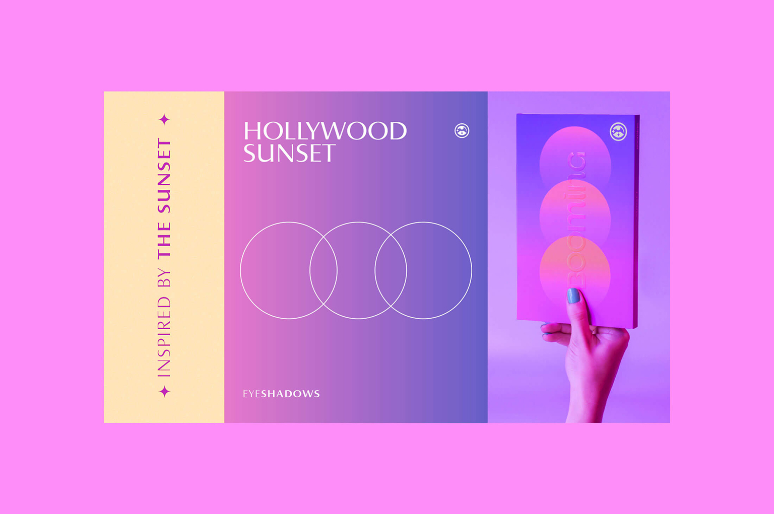 该化妆品系列通过粉红、紫、橙三色渐变的光影交织,生动诠释了品牌活力多元的包容理念,其配色灵感源自洛杉矶天际线变幻的璀璨晚霞。