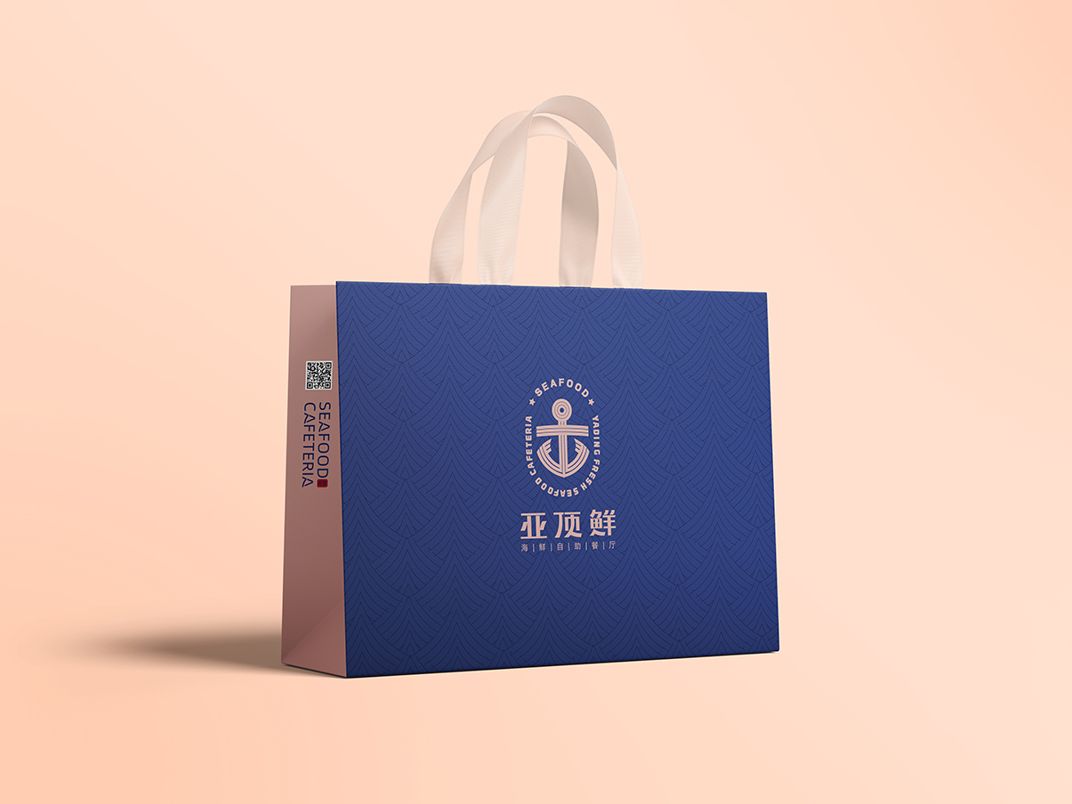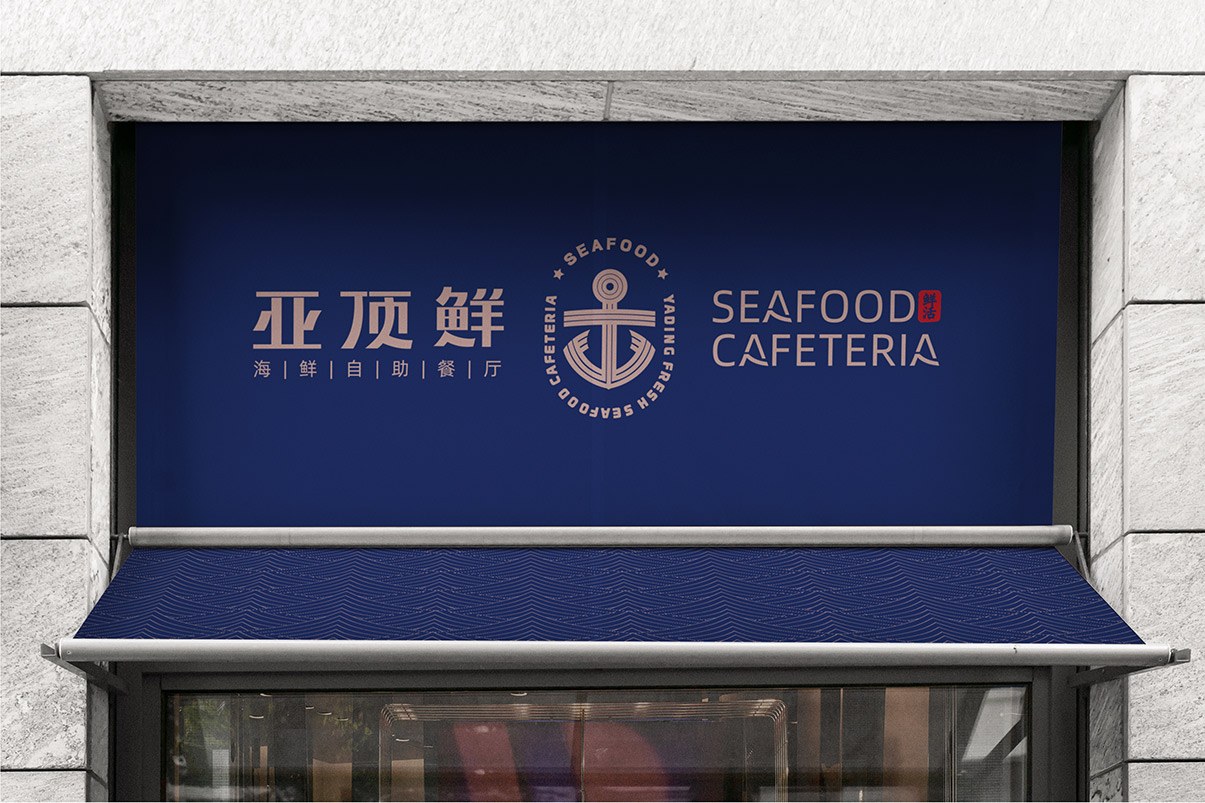 Introduction:亚顶鲜海鲜自助餐厅的品牌设计,以“海洋中的搬运工”海洋风格为主,将船锚作为核心视觉符号,品牌设计的色彩搭配以深蓝为主,古铜金为辅,气质典雅而高贵。简洁而直接地展现了餐厅的独特品味与优势。