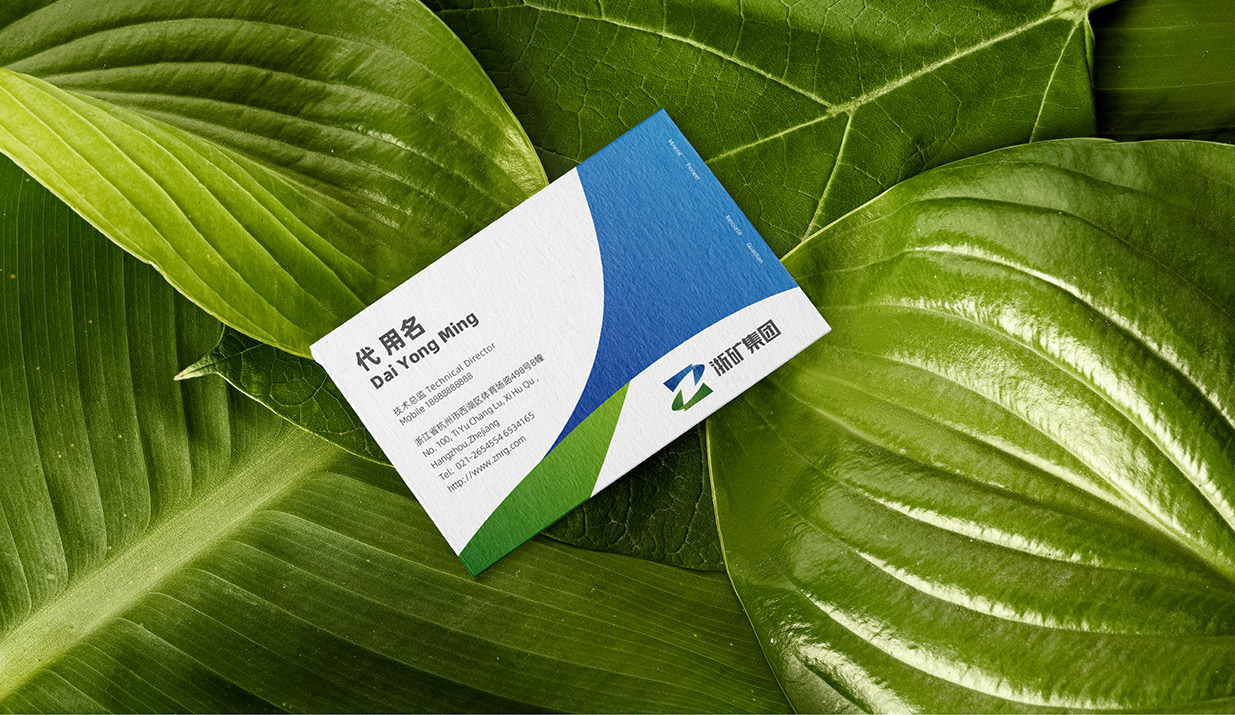 Logo的上下两横分别采用蓝色和绿色,蓝色代表科技创新,象征着浙矿集团在技术领域的领先地位和对未来的不懈追求;绿色则代表绿色发展理念,体现了公司对矿产资源可持续发展的长远规划。蓝绿色彩搭配,不仅使Logo更加醒目和富有层次感,也彰显了浙矿集团作为一家现代化企业的时代感和责任感。以简洁明快的线条和富有象征意义的图形元素,展现了公司的独特魅力和坚定信念。