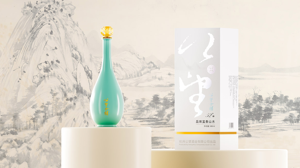 Introduction:公望白酒以其独特的葡萄酿造工艺脱颖而出,其口感醇正且带有葡萄特有的果香,这种与众不同的特质为包装设计提供了丰富的灵感来源。公望白酒的酿造基地位于风景秀丽的富春江畔,这里是元代著名画家黄公望的故里,深厚的文化底蕴为产品注入了独特的灵魂。因此,包装设计的核心理念是借势地域文化,将传统文化与现代审美相结合,打造出具有独特人文气质的产品形象。