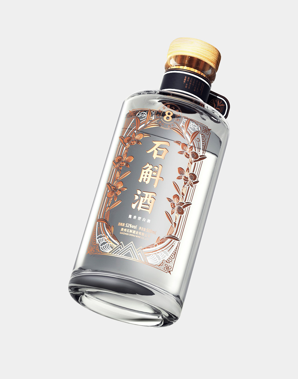 精选8年生金钗石斛作为主要原料,采用贵州传统的酱香白酒酿造工艺,经过精心制作,使金钗石斛的清香与酱香白酒的醇厚完美融合。瓶身选用高级金色作为主色调,象征金钗石斛的稀有。以白色线条描绘出山水自然图案,寓意金钗石斛源自自然,品质卓越。