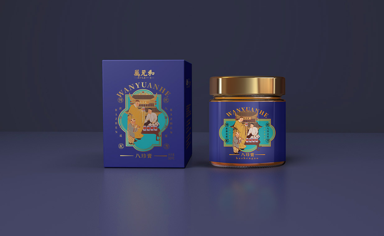 Introduction:万元和八珍膏,百年传承,历史悠久。自清光绪年间创立以来,一直致力于传承和发扬中华传统食养文化。通过包装设计展现了品牌的历史底蕴和文化内涵。