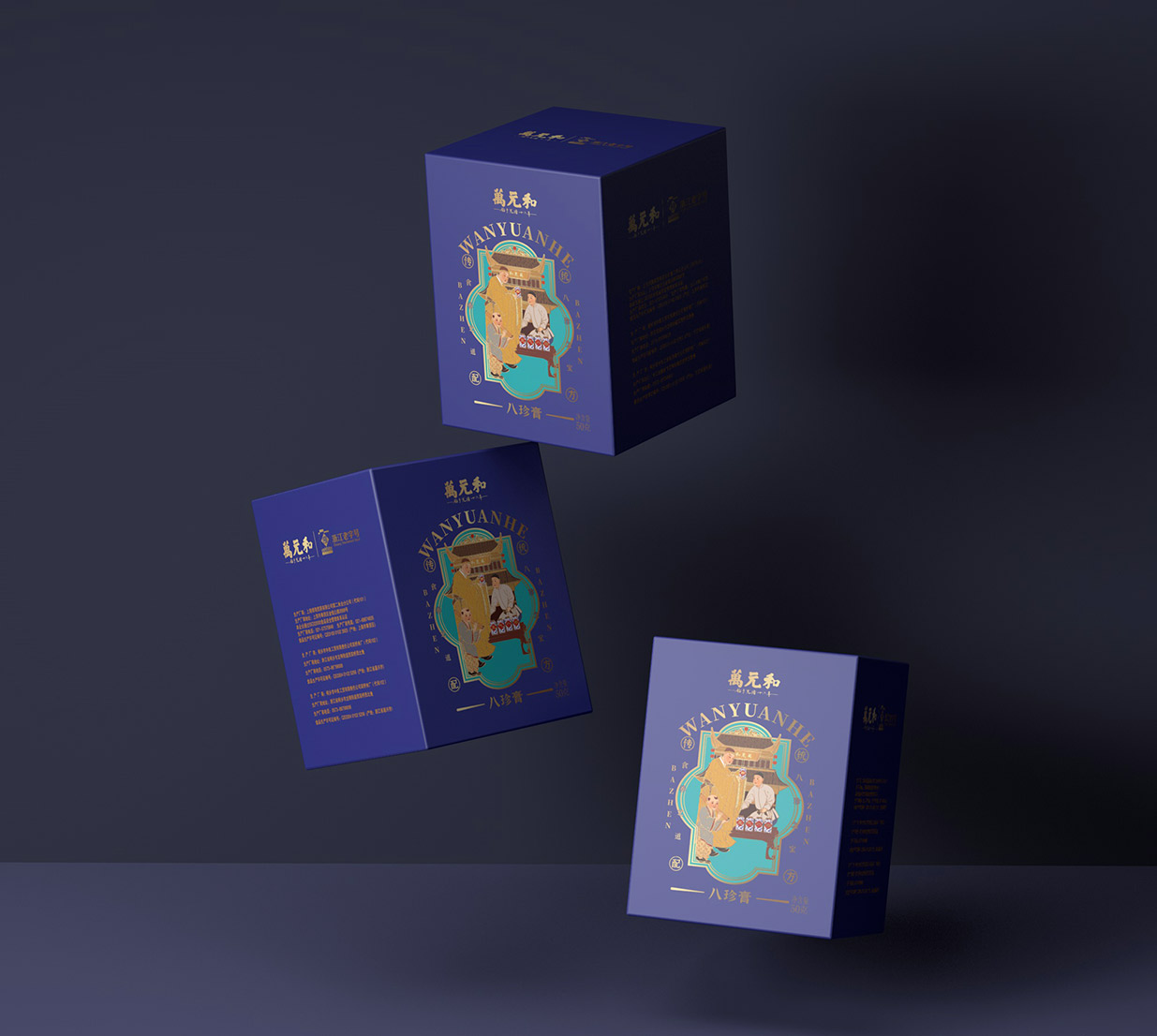 仕女与书生,是中国传统文化中最为经典的形象之一,代表着优雅、智慧和坚韧。我们将这一形象融入包装设计中,寓意着万元和八珍膏不仅能够调理身体,更能滋养心灵,提升生活品质。