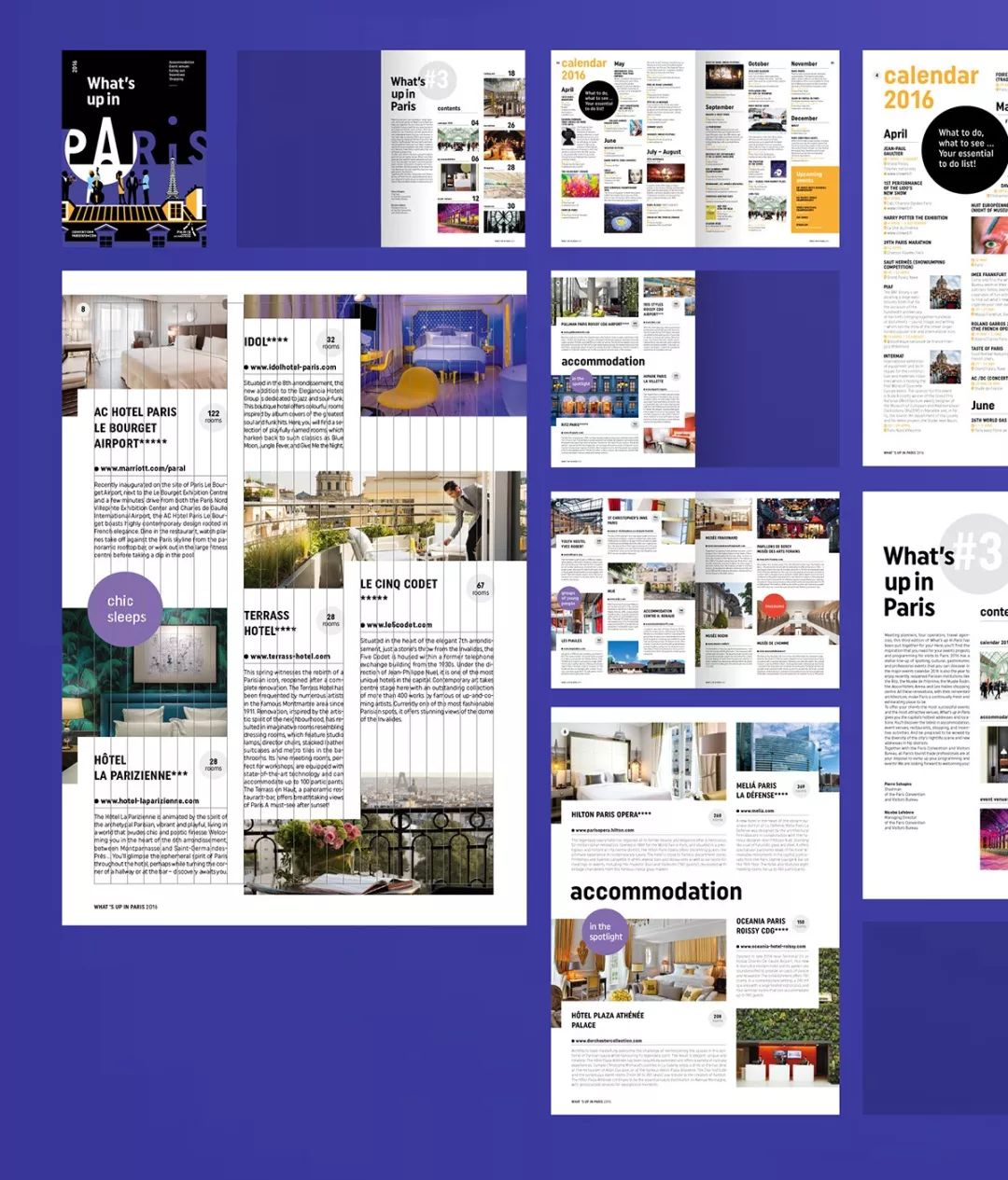 在巴黎的最新动态潮流杂志上,通过32页介绍了巴黎酒店,活动场所,餐厅和购物方面的最新开业和装修信息。 画册封面设计成了黑色,以展现巴黎是一个夜生活丰富的城市形象。