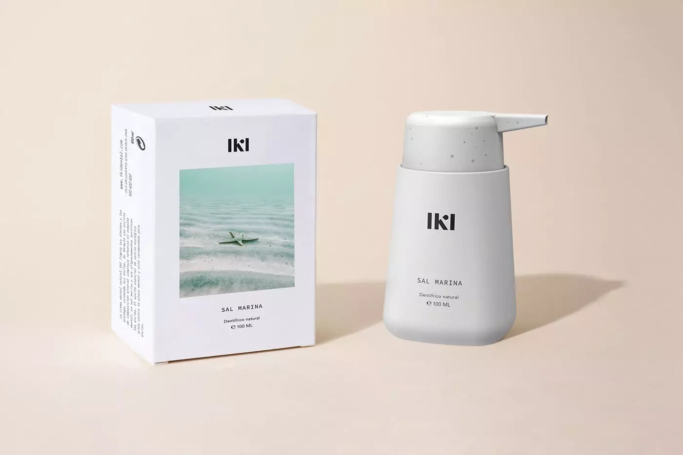 IKI天然牙膏,该产品的灵感来自Menorca海滩上的海鸥。为了尊重环境,产品采用优质的环保设计,由天然成分制成:薄荷和迷迭香,粘土, 鼠尾草和海盐。