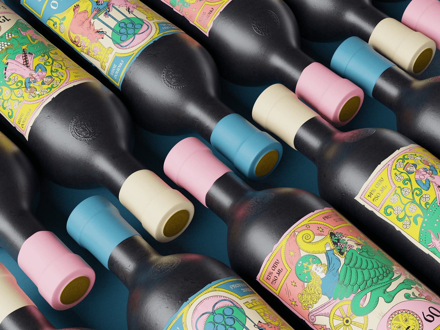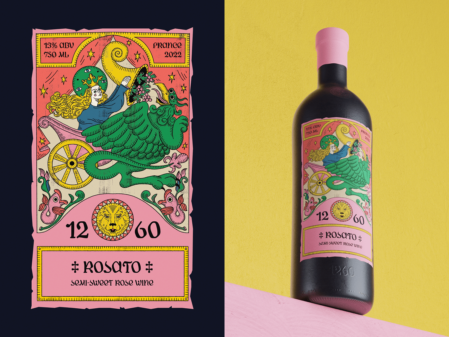 这组葡萄酒包装设计,采用中世纪复古设计风格,精美的插画极大地提升产品的吸引力和艺术感。