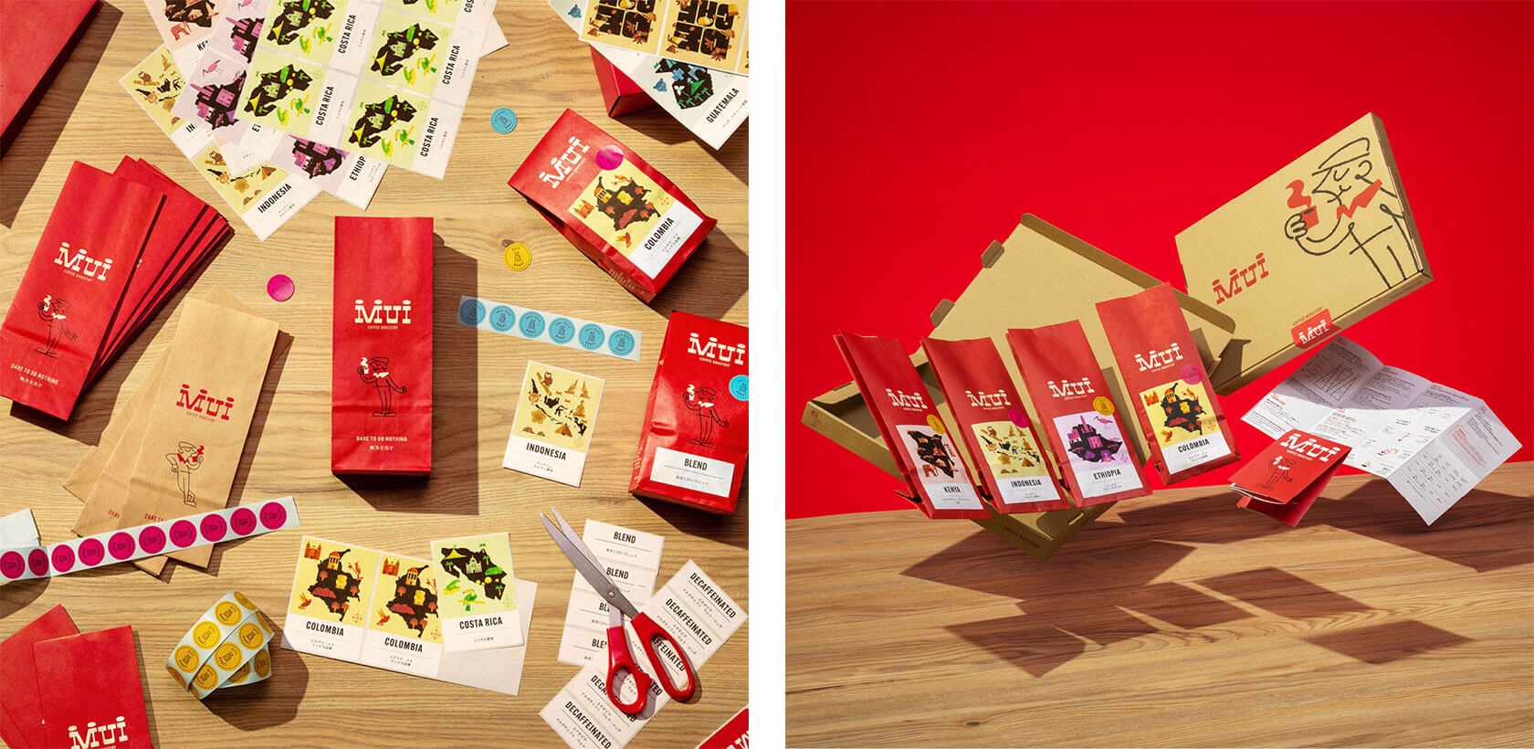 MUI的新外观以醒目的红色为主色调,每个咖啡品种的包装上都有定制的插图,凸显其原产地特色。这种设计不仅体现了意大利怀旧风格,也展现了日本对古怪人物的热爱,使得MUI的品牌形象更加生动和具有辨识度。