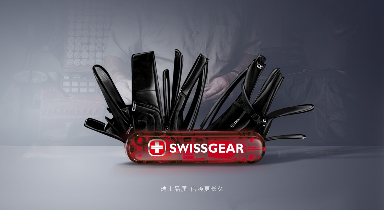 品牌形象:强调瑞士血统以及多功能箱包的基础属性,他的作用主要是传播品牌核心价值。