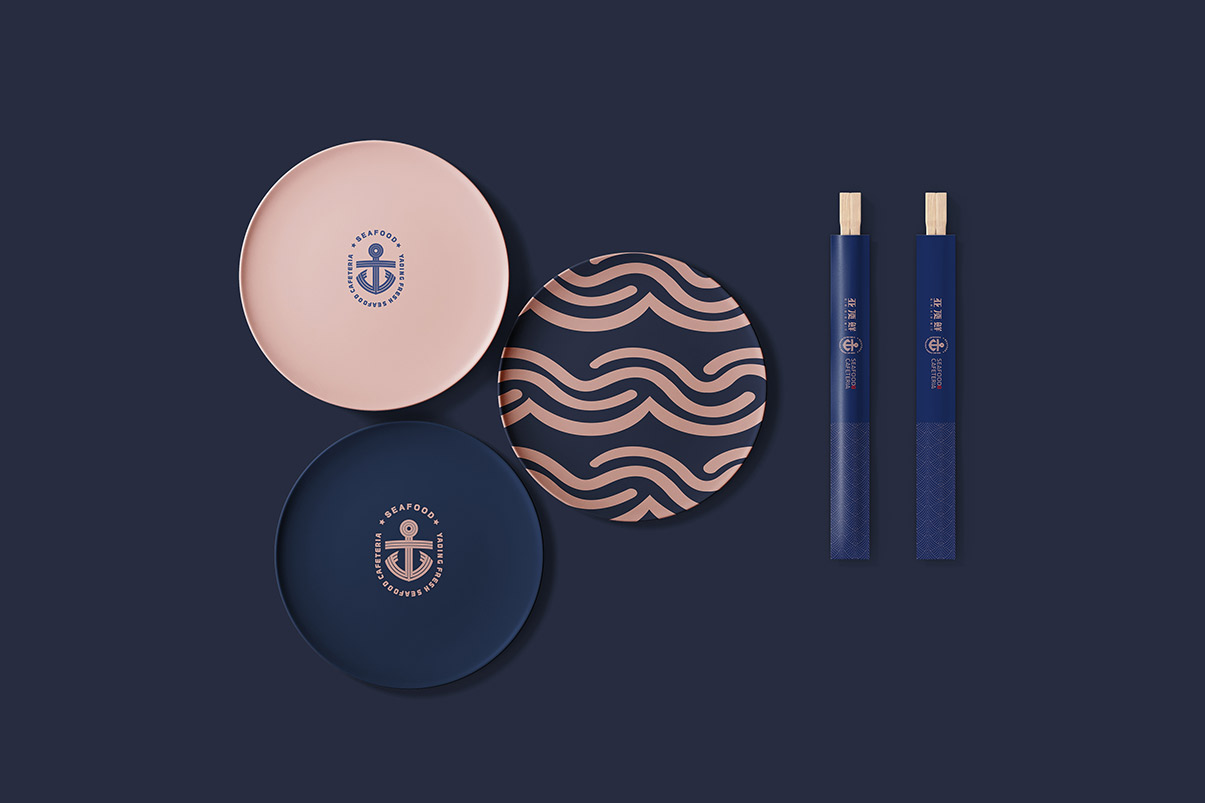 Introduction:亚顶鲜海鲜自助餐厅的品牌设计,以“海洋中的搬运工”海洋风格为主,将船锚作为核心视觉符号,品牌设计的色彩搭配以深蓝为主,古铜金为辅,气质典雅而高贵。简洁而直接地展现了餐厅的独特品味与优势。