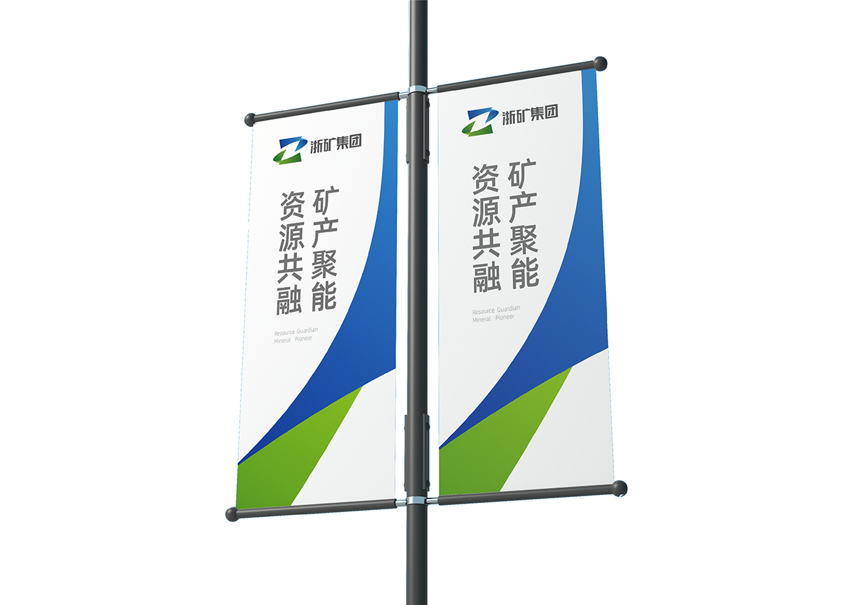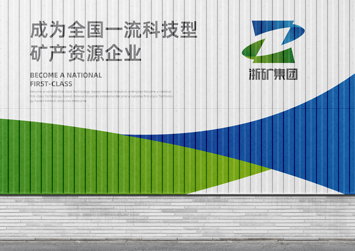 Logo的上下两横分别采用蓝色和绿色,蓝色代表科技创新,象征着浙矿集团在技术领域的领先地位和对未来的不懈追求;绿色则代表绿色发展理念,体现了公司对矿产资源可持续发展的长远规划。蓝绿色彩搭配,不仅使Logo更加醒目和富有层次感,也彰显了浙矿集团作为一家现代化企业的时代感和责任感。以简洁明快的线条和富有象征意义的图形元素,展现了公司的独特魅力和坚定信念。