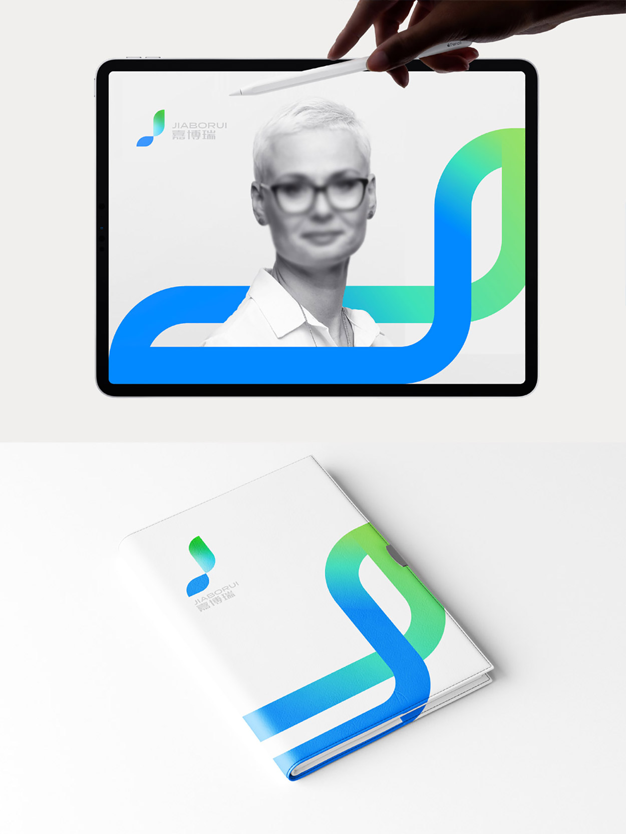 品牌标志以字母“J”为核心进行符号化提炼,采用蓝绿色系搭配,传递宁静、科技与生命的融合意象。设计风格简约现代,体现生生不息的活力与生命科技的先进感,呼应品牌在医养结合领域的专业性与创新性。