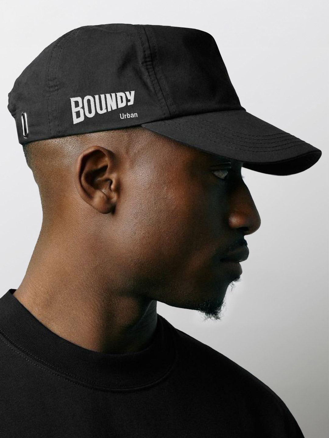 品牌标志设计核心符号:以品牌名称“BOUNDY”为主体,通过厚重字体与透视结构强化视觉冲击力。字体棱角分明,倾斜的透视造型体现动态感与力量延伸感。